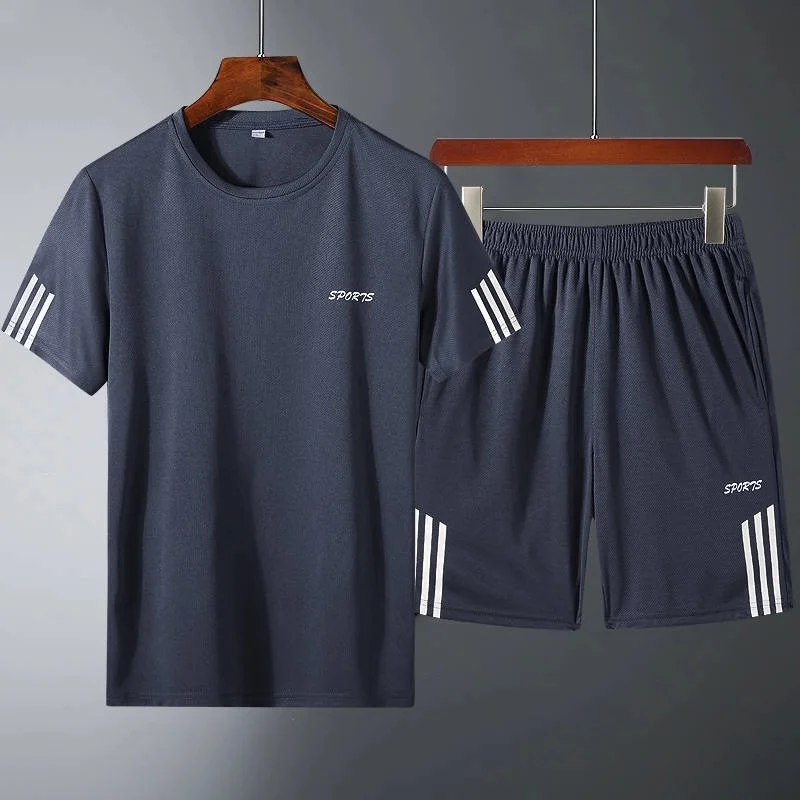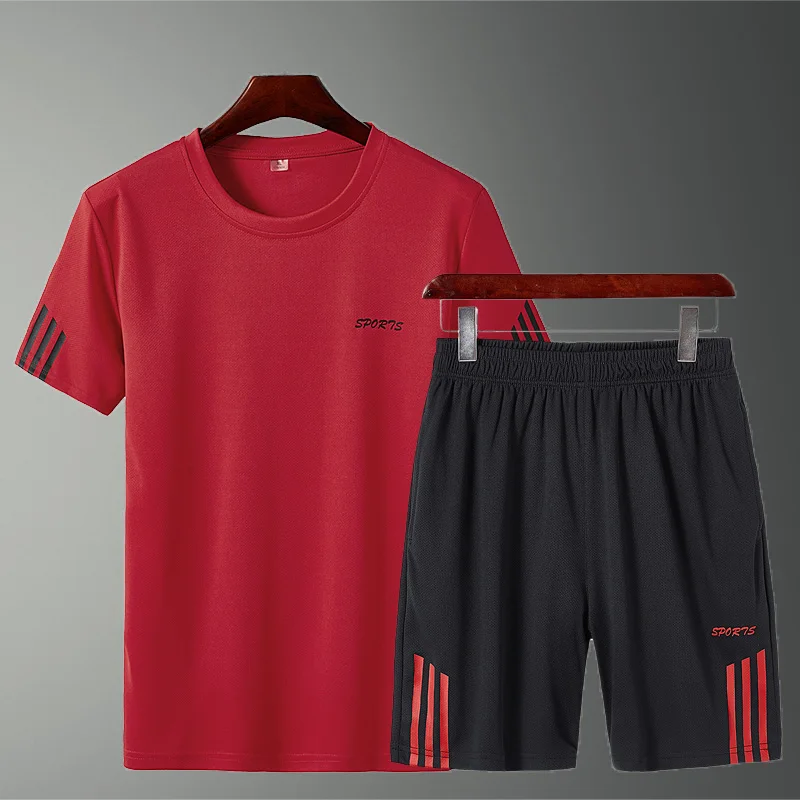 Large size sports suit men's fitness clothing summer 2PC short men's round neck collar fashion 2 T-