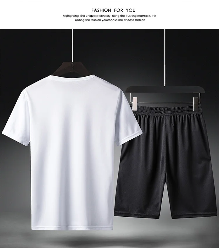 Addition Information of Large size sports suit men's fitness clothing summer 2PC short men's round neck collar fashion 2 T-